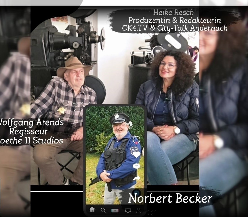 Heike im Gespräch mit Wolfgang Arends und Norbert Becker von den Goethe11 Studios.